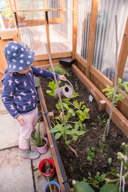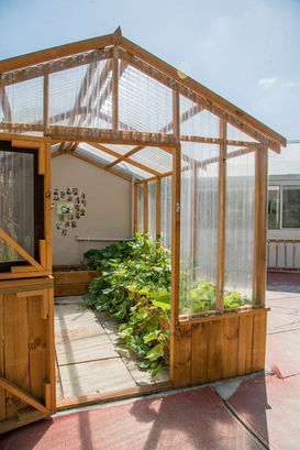 Our very own greenhouse outside is a great way to teach the children about agriculture, growth, foods, healthy living, fitness and nutrition.